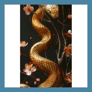 황금뱀 금빛 부귀화 풍수지리 3D보석십자수 12간지 을사년 뱀띠 매화꽃 재물복 돈 들어오는 비즈십자수 DIY키트 개업 집들이선물 액자없음